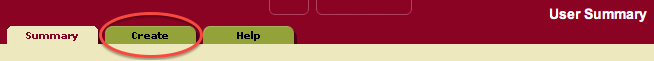 At the top of the User Summary screen, click the "Create" tab: